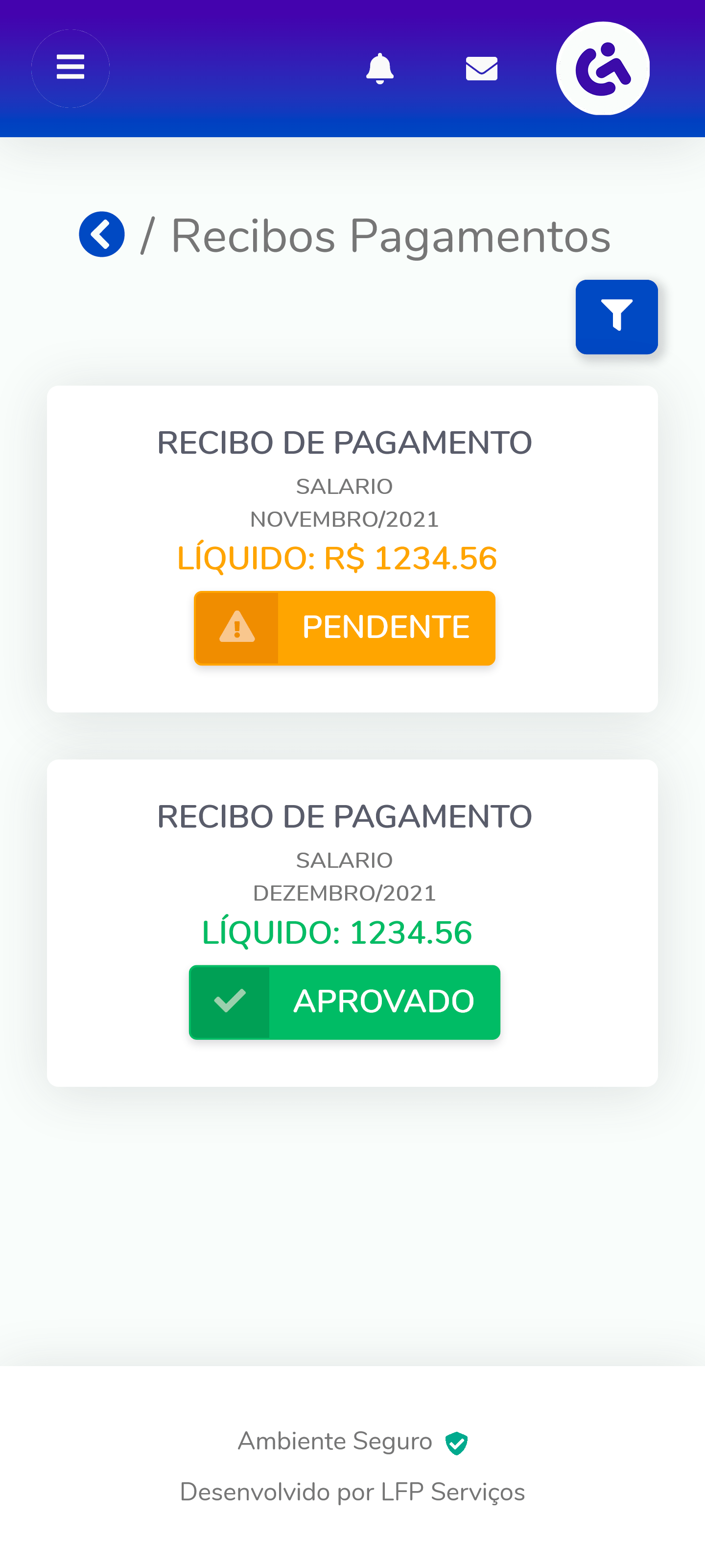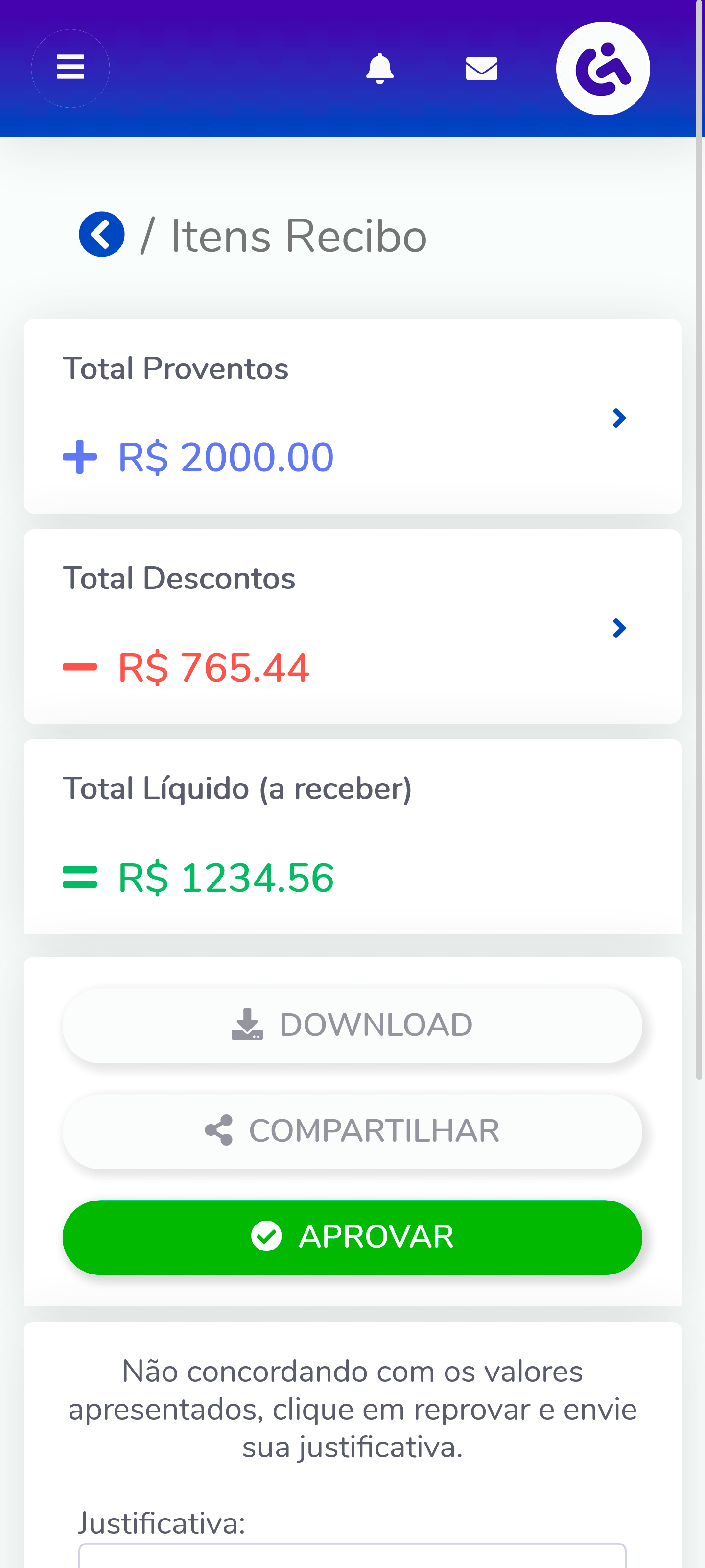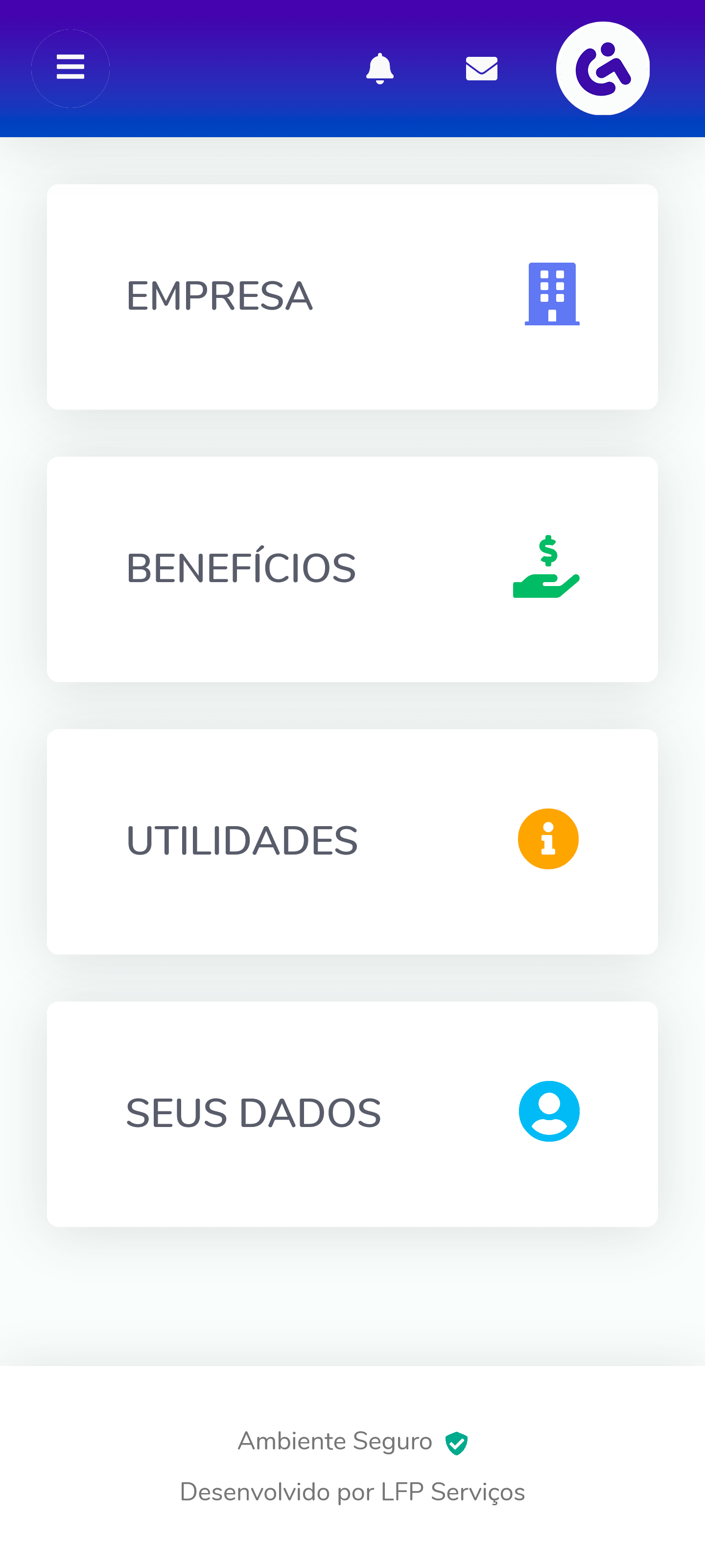 Aplicativo com interface simples e prática para ser acessado através de smartphones. Neste ambiente os colaboradores poderão dar o aceite aos holerites, visualizar seus documentos e acessar o Painel RH.